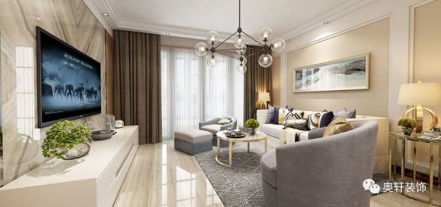 别墅的客厅比较大,是非常重要的场所,因此,在设计时,要注意对空间整体和局部的把控。而在进行别墅高层处理时,要增加辅助照明、墙面修饰、栏板形式等手法来丰富别墅的空间感。